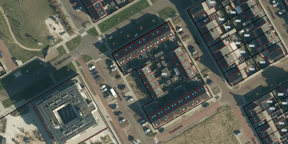 Gaaibank 1 is gelegen op kadastraal perceel BES00E5776. Deze kadastrale aanduiding is uniek en wordt gebruikt door het Kadaster om eigendomsrechten en andere zakelijke rechten vast te leggen. Het perceel maakt onderdeel uit van de kadastrale gemeente Best.