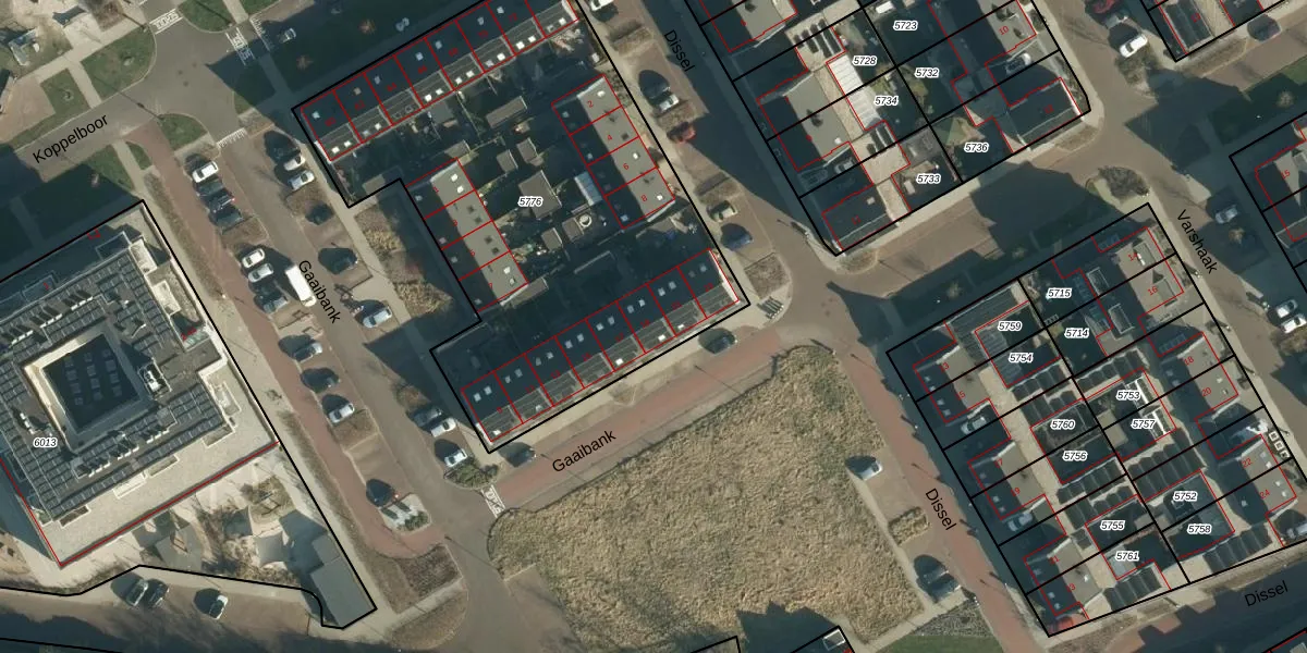 Gaaibank 19 is gelegen op kadastraal perceel BES00E5776. Deze kadastrale aanduiding is uniek en wordt gebruikt door het Kadaster om eigendomsrechten en andere zakelijke rechten vast te leggen. Het perceel maakt onderdeel uit van de kadastrale gemeente Best.