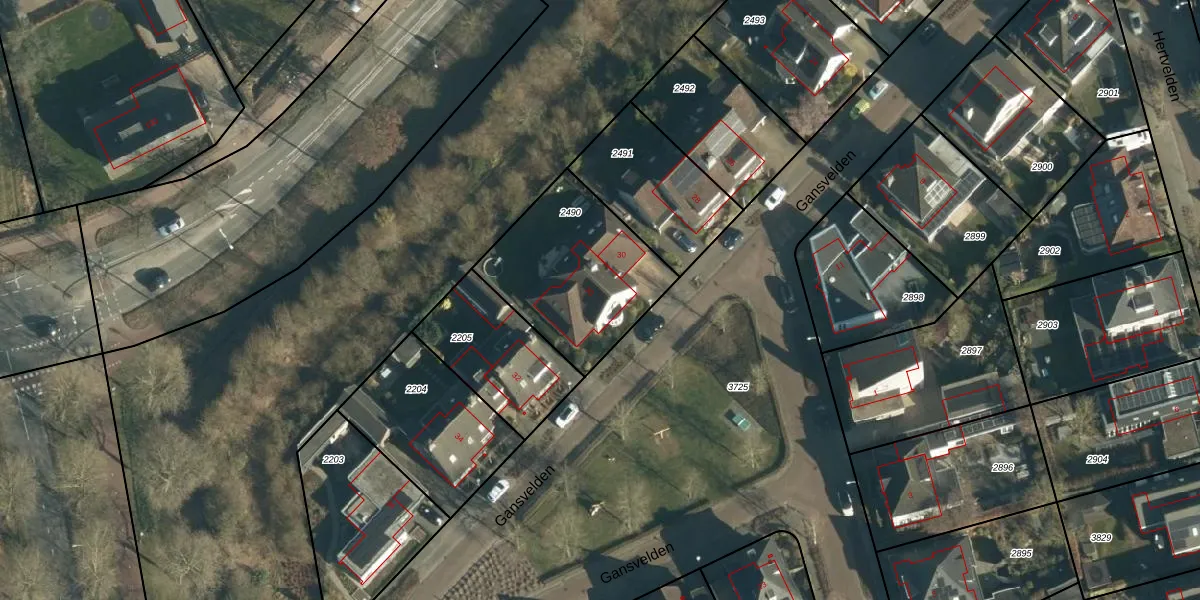 Gansvelden 30 is gelegen op kadastraal perceel BES00K2490. Deze kadastrale aanduiding is uniek en wordt gebruikt door het Kadaster om eigendomsrechten en andere zakelijke rechten vast te leggen. Het perceel maakt onderdeel uit van de kadastrale gemeente Best.
