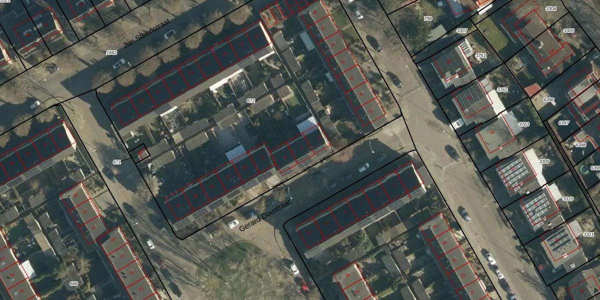 Gerard Doustraat 4 is gelegen op kadastraal perceel BES00H672. Deze kadastrale aanduiding is uniek en wordt gebruikt door het Kadaster om eigendomsrechten en andere zakelijke rechten vast te leggen. Het perceel maakt onderdeel uit van de kadastrale gemeente Best.