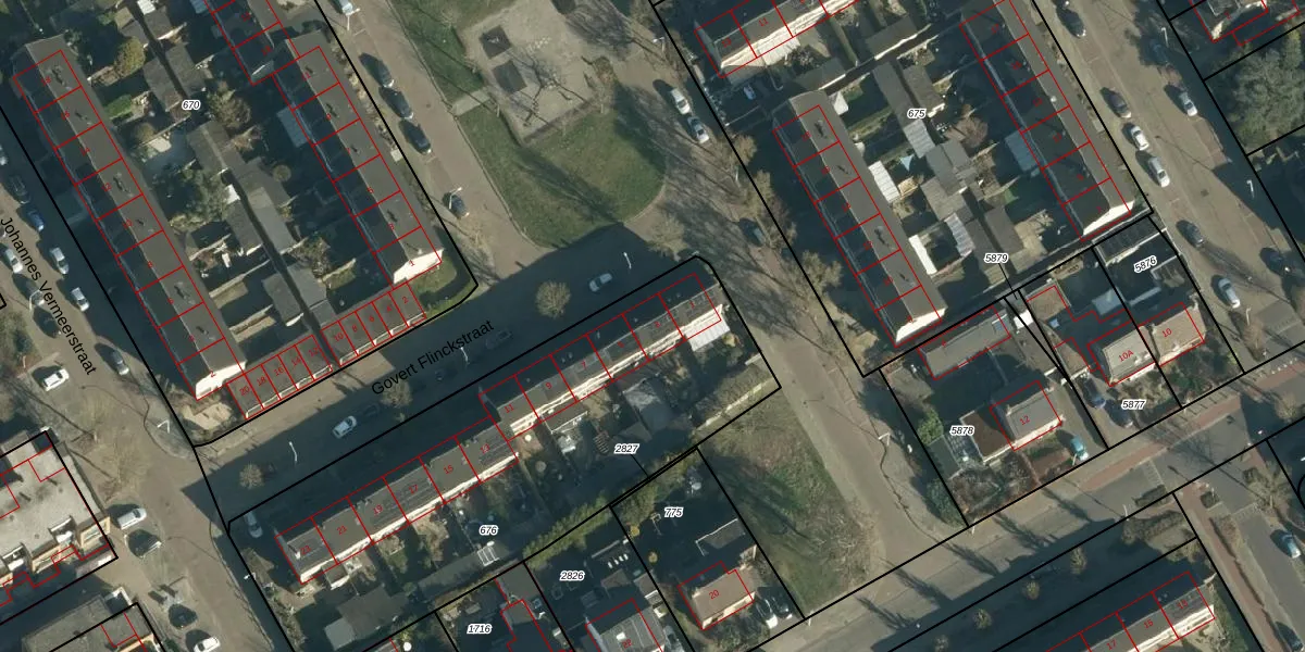 Het perceel waarop Govert Flinckstraat 3 staat heeft een oppervlakte van 2256 m². Dit is een zeer groot perceel. De perceeloppervlakte wordt geregistreerd door het Kadaster. Gedetailleerde informatie over de maten van dit perceel kunt u vinden in het rapport Kadastrale kaart met maatvoering van Govert Flinckstraat 3.