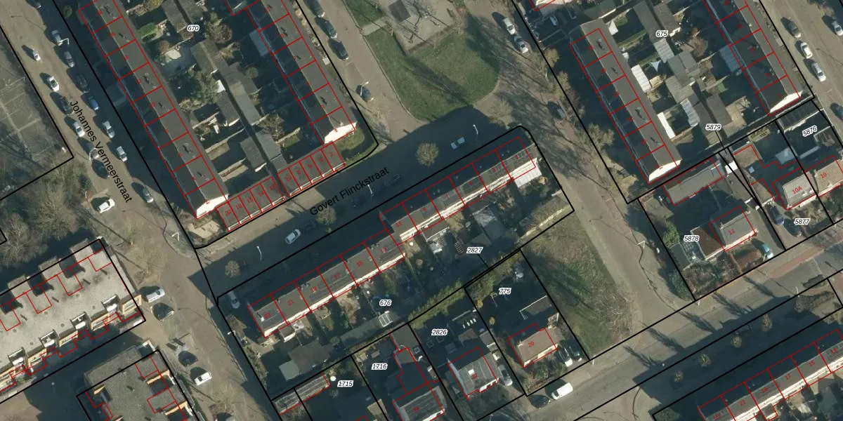 Het perceel waarop Govert Flinckstraat 9 staat heeft een oppervlakte van 2256 m². Dit is een zeer groot perceel. De perceeloppervlakte wordt geregistreerd door het Kadaster. Gedetailleerde informatie over de maten van dit perceel kunt u vinden in het rapport Kadastrale kaart met maatvoering van Govert Flinckstraat 9.