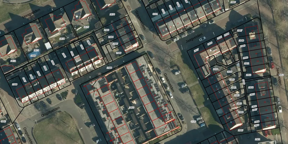 Het perceel waarop Graanvelden 12 staat heeft een oppervlakte van 3038 m². Dit is een zeer groot perceel. De perceeloppervlakte wordt geregistreerd door het Kadaster. Gedetailleerde informatie over de maten van dit perceel kunt u vinden in het rapport Kadastrale kaart met maatvoering van Graanvelden 12.