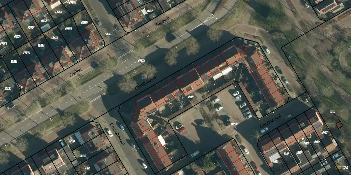 Het perceel waarop Grindheuvel 12 staat heeft een oppervlakte van 2912 m². Dit is een zeer groot perceel. De perceeloppervlakte wordt geregistreerd door het Kadaster. Gedetailleerde informatie over de maten van dit perceel kunt u vinden in het rapport Kadastrale kaart met maatvoering van Grindheuvel 12.