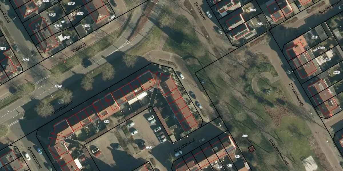 Grindheuvel 34 is gelegen op kadastraal perceel BES00K910. Deze kadastrale aanduiding is uniek en wordt gebruikt door het Kadaster om eigendomsrechten en andere zakelijke rechten vast te leggen. Het perceel maakt onderdeel uit van de kadastrale gemeente Best.