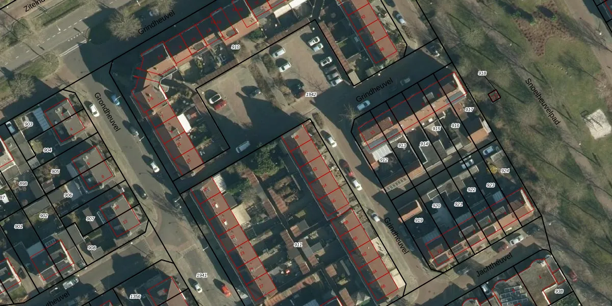 Grindheuvel 50 is gelegen op kadastraal perceel BES00K911. Deze kadastrale aanduiding is uniek en wordt gebruikt door het Kadaster om eigendomsrechten en andere zakelijke rechten vast te leggen. Het perceel maakt onderdeel uit van de kadastrale gemeente Best.