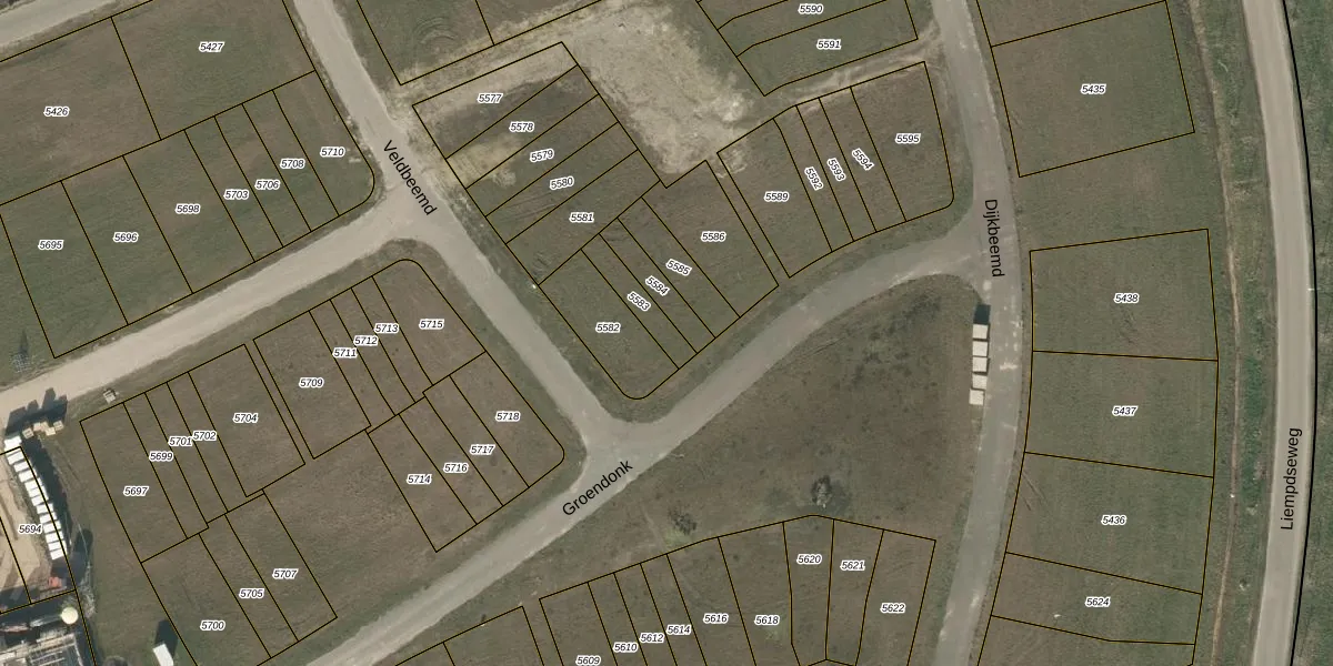 Gebruik de zoekbalk of klik op een perceel voor informatie over de adressen binnen dit perceel.