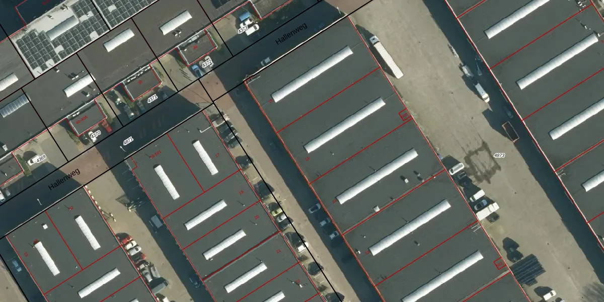 Het perceel waarop Hallenweg 15 staat heeft een oppervlakte van 2,3 ha. Dit is een zeer groot perceel. De perceeloppervlakte wordt geregistreerd door het Kadaster. Gedetailleerde informatie over de maten van dit perceel kunt u vinden in het rapport Kadastrale kaart met maatvoering van Hallenweg 15.