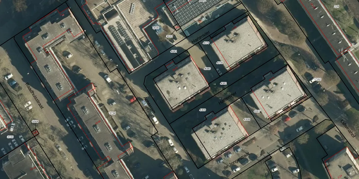 Het perceel waarop Hartenvier 45 staat heeft een oppervlakte van 693 m². Dit is een groot perceel. De perceeloppervlakte wordt geregistreerd door het Kadaster. Gedetailleerde informatie over de maten van dit perceel kunt u vinden in het rapport Kadastrale kaart met maatvoering van Hartenvier 45.