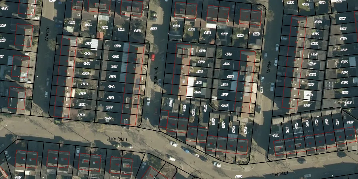 Gebruik de zoekbalk of klik op een perceel voor informatie over de adressen binnen dit perceel.