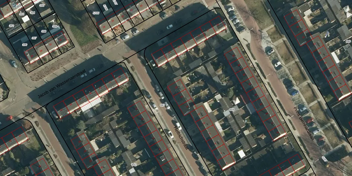 Het perceel waarop Helfrichstraat 18 staat heeft een oppervlakte van 5440 m². Dit is een zeer groot perceel. De perceeloppervlakte wordt geregistreerd door het Kadaster. Gedetailleerde informatie over de maten van dit perceel kunt u vinden in het rapport Kadastrale kaart met maatvoering van Helfrichstraat 18.