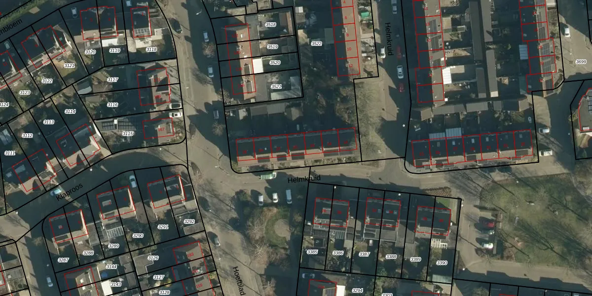 Het perceel waarop Helmkruid 20 staat heeft een oppervlakte van 2165 m². Dit is een zeer groot perceel. De perceeloppervlakte wordt geregistreerd door het Kadaster. Gedetailleerde informatie over de maten van dit perceel kunt u vinden in het rapport Kadastrale kaart met maatvoering van Helmkruid 20.