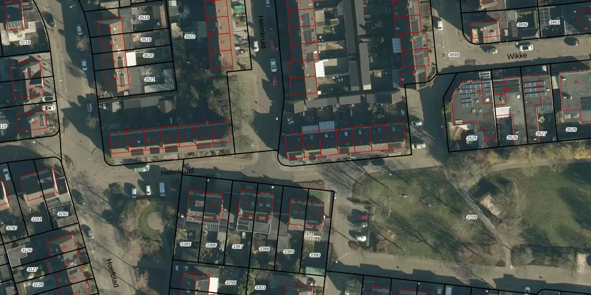Het perceel waarop Helmkruid 23 staat heeft een oppervlakte van 5770 m². Dit is een zeer groot perceel. De perceeloppervlakte wordt geregistreerd door het Kadaster. Gedetailleerde informatie over de maten van dit perceel kunt u vinden in het rapport Kadastrale kaart met maatvoering van Helmkruid 23.