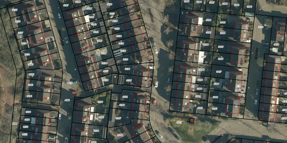 Gebruik de zoekbalk of klik op een perceel voor informatie over de adressen binnen dit perceel.