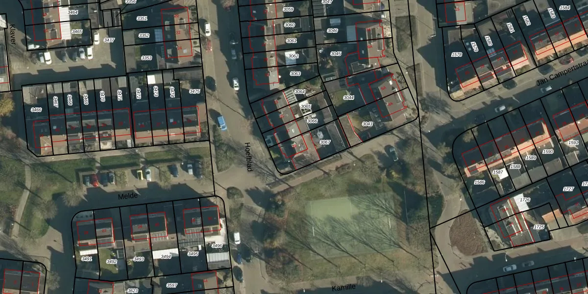 Het perceel waarop Hoefblad 39 staat heeft een oppervlakte van 275 m². Dit is een middelgroot perceel. De perceeloppervlakte wordt geregistreerd door het Kadaster. Gedetailleerde informatie over de maten van dit perceel kunt u vinden in het rapport Kadastrale kaart met maatvoering van Hoefblad 39.