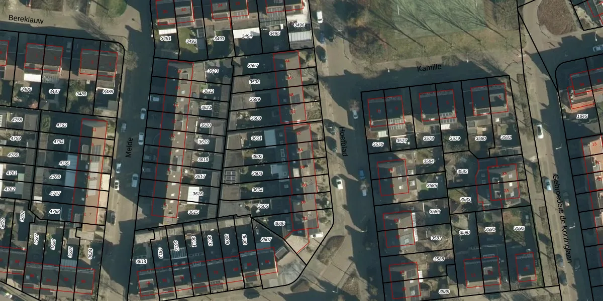 Het perceel waarop Hoefblad 54 staat heeft een oppervlakte van 195 m². Dit is een middelgroot perceel. De perceeloppervlakte wordt geregistreerd door het Kadaster. Gedetailleerde informatie over de maten van dit perceel kunt u vinden in het rapport Kadastrale kaart met maatvoering van Hoefblad 54.