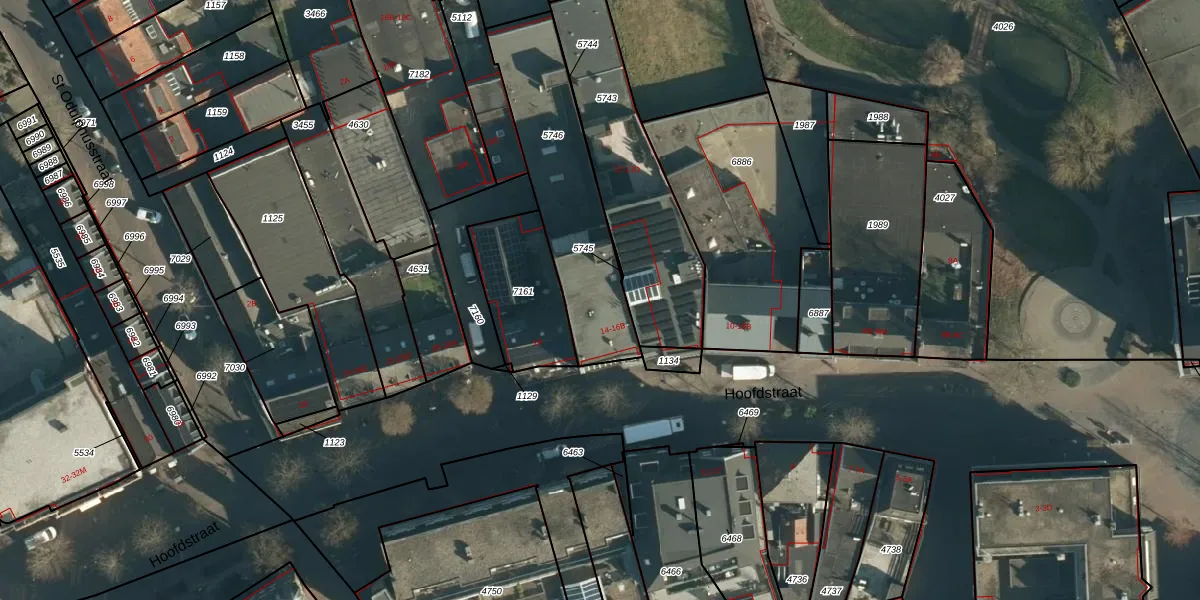 Het perceel waarop Hoofdstraat 16 staat heeft een oppervlakte van 634 m². Dit is een groot perceel. De perceeloppervlakte wordt geregistreerd door het Kadaster. Gedetailleerde informatie over de maten van dit perceel kunt u vinden in het rapport Kadastrale kaart met maatvoering van Hoofdstraat 16.