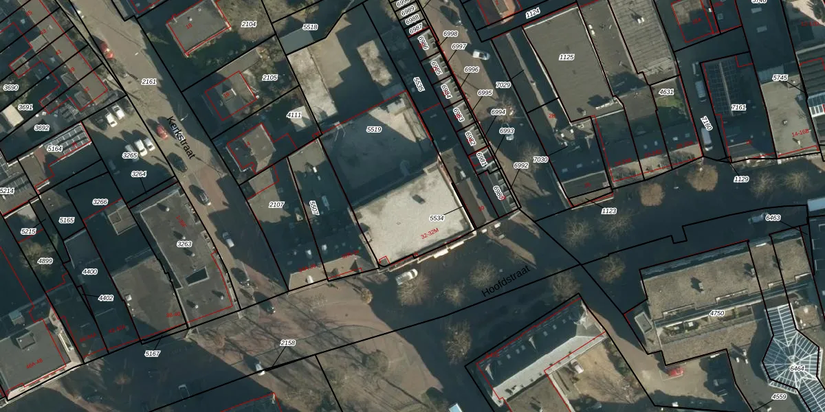 Het perceel waarop Hoofdstraat 32-G staat heeft een oppervlakte van 1404 m². Dit is een zeer groot perceel. De perceeloppervlakte wordt geregistreerd door het Kadaster. Gedetailleerde informatie over de maten van dit perceel kunt u vinden in het rapport Kadastrale kaart met maatvoering van Hoofdstraat 32-G.
