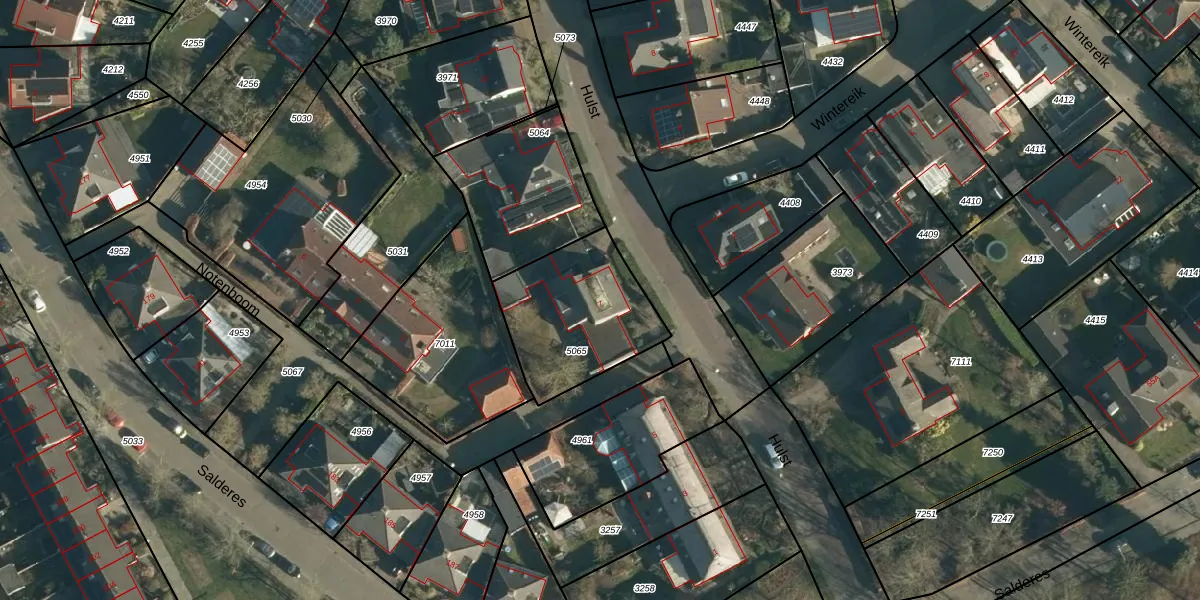 Het perceel waarop Hulst 7 staat heeft een oppervlakte van 501 m². Dit is een groot perceel. De perceeloppervlakte wordt geregistreerd door het Kadaster. Gedetailleerde informatie over de maten van dit perceel kunt u vinden in het rapport Kadastrale kaart met maatvoering van Hulst 7.