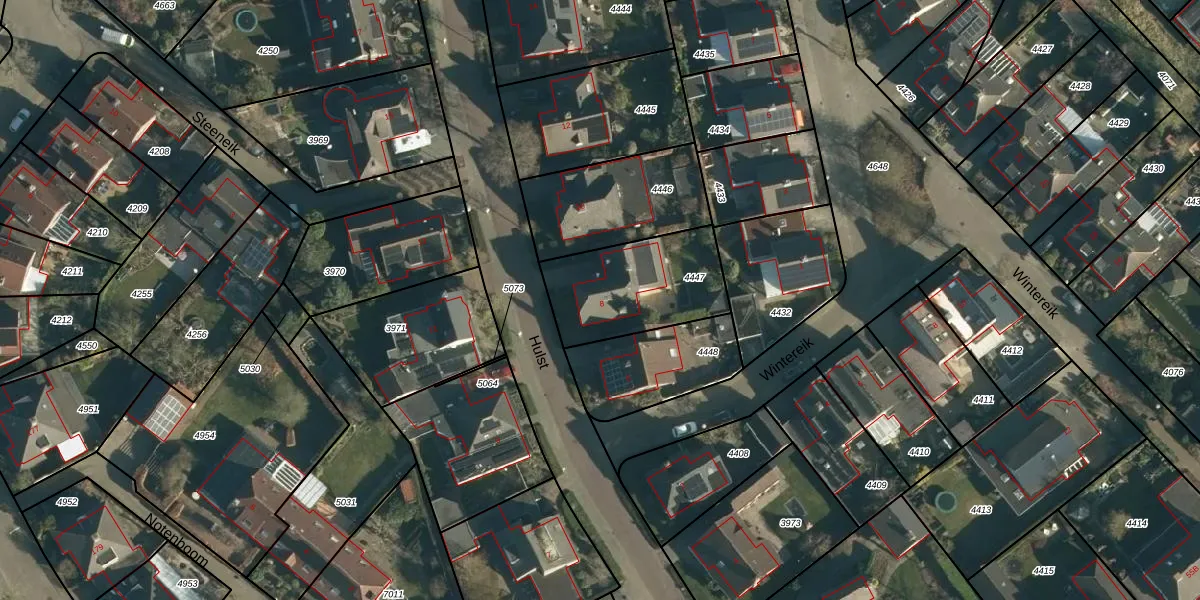 Het perceel waarop Hulst 8 staat heeft een oppervlakte van 437 m². Dit is een groot perceel. De perceeloppervlakte wordt geregistreerd door het Kadaster. Gedetailleerde informatie over de maten van dit perceel kunt u vinden in het rapport Kadastrale kaart met maatvoering van Hulst 8.