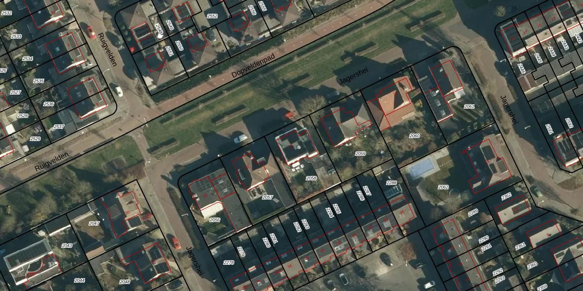 Het perceel waarop Jagershei 21 staat heeft een oppervlakte van 442 m². Dit is een groot perceel. De perceeloppervlakte wordt geregistreerd door het Kadaster. Gedetailleerde informatie over de maten van dit perceel kunt u vinden in het rapport Kadastrale kaart met maatvoering van Jagershei 21.