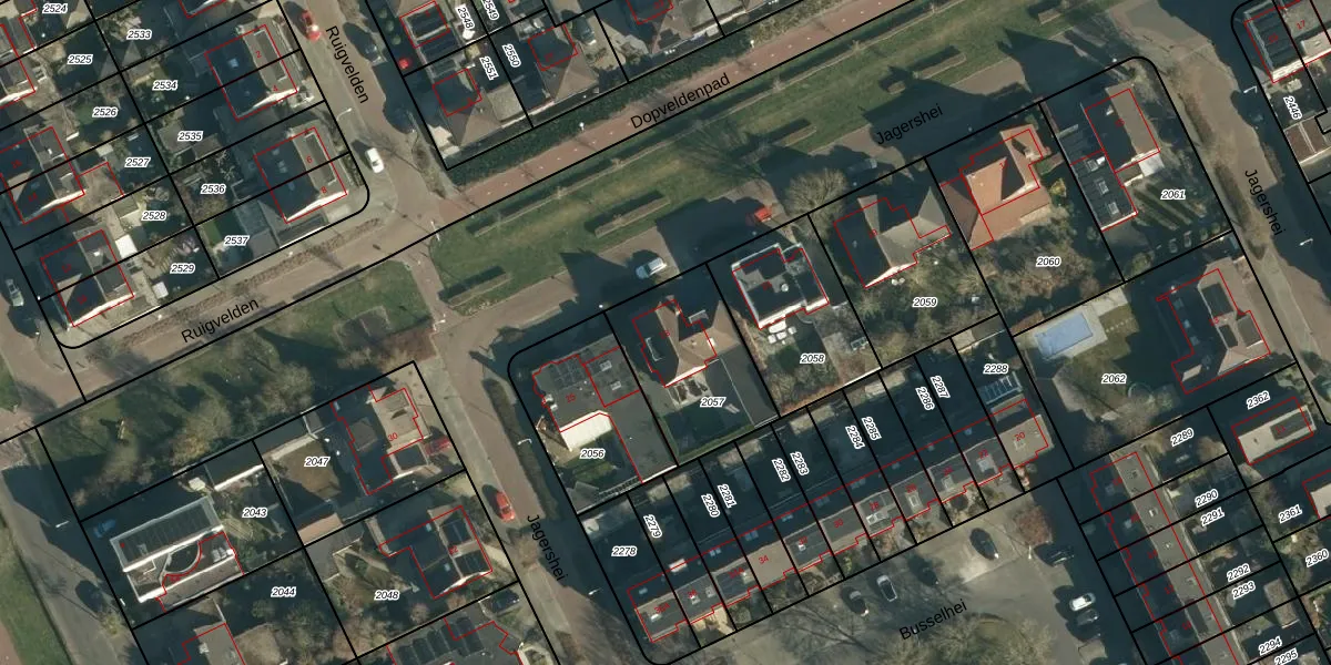 Gebruik de zoekbalk of klik op een perceel voor informatie over de adressen binnen dit perceel.