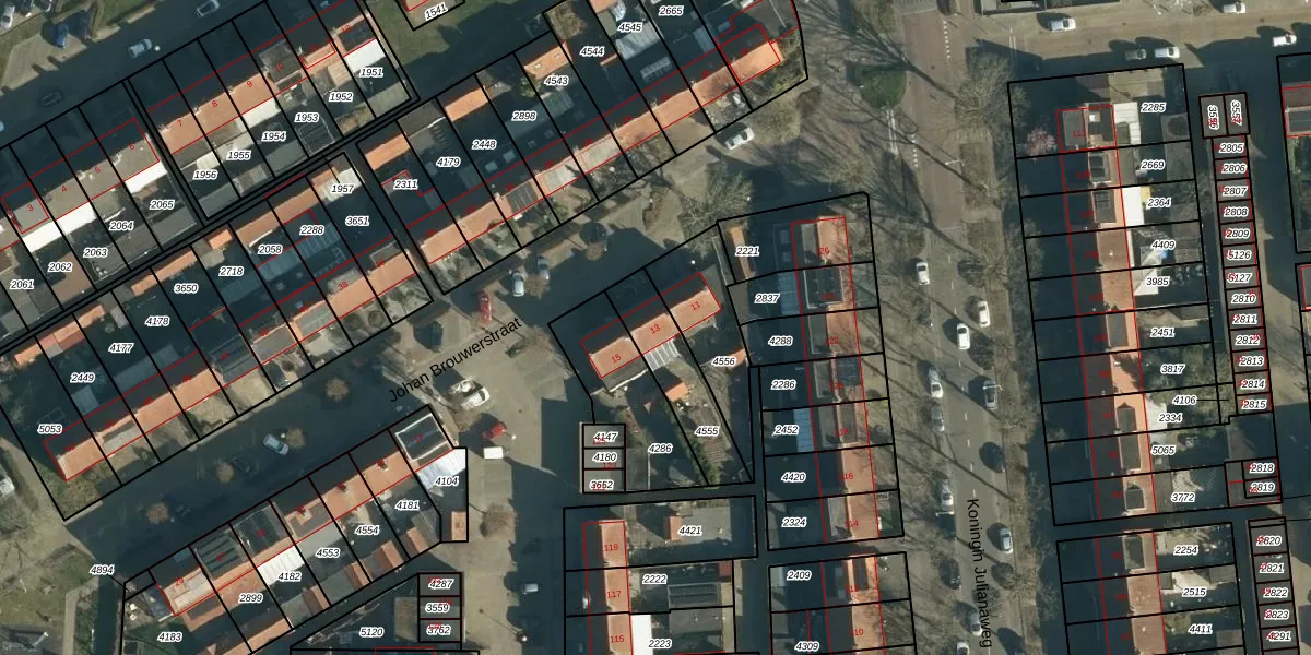 Gebruik de zoekbalk of klik op een perceel voor informatie over de adressen binnen dit perceel.