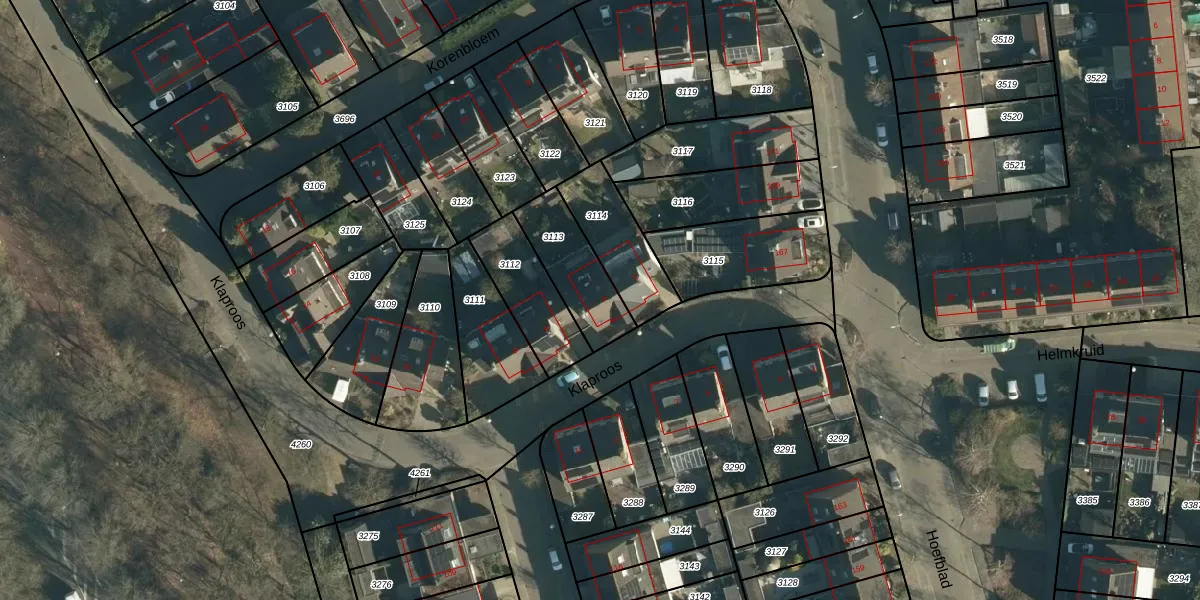 Gebruik de zoekbalk of klik op een perceel voor informatie over de adressen binnen dit perceel.