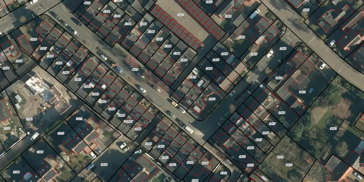 Gebruik de zoekbalk of klik op een perceel voor informatie over de adressen binnen dit perceel.