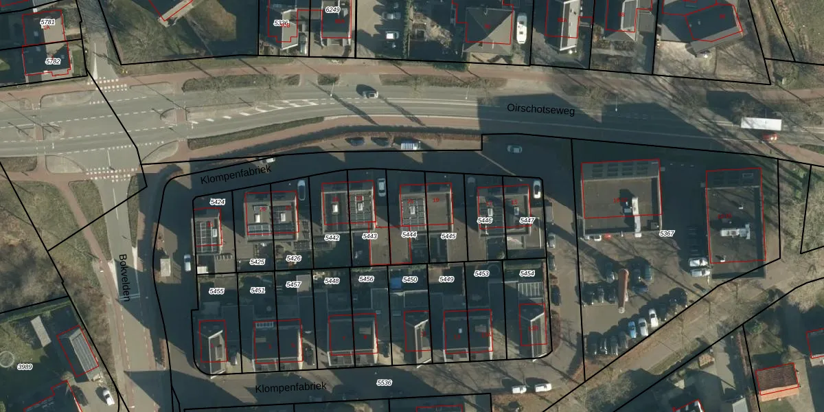 Klompenfabriek 21 is gelegen op kadastraal perceel BES00E5444. Deze kadastrale aanduiding is uniek en wordt gebruikt door het Kadaster om eigendomsrechten en andere zakelijke rechten vast te leggen. Het perceel maakt onderdeel uit van de kadastrale gemeente Best.