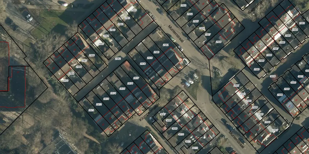 Gebruik de zoekbalk of klik op een perceel voor informatie over de adressen binnen dit perceel.
