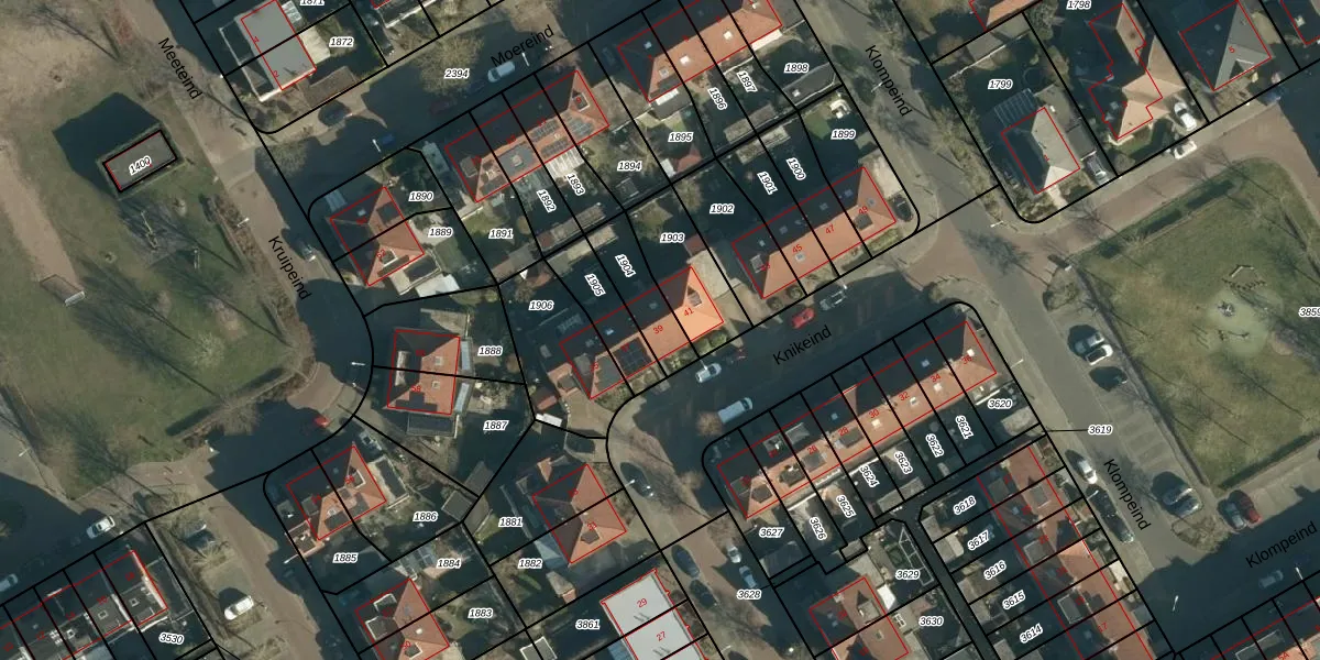 Het perceel waarop Knikeind 39 staat heeft een oppervlakte van 150 m². Dit is een middelgroot perceel. De perceeloppervlakte wordt geregistreerd door het Kadaster. Gedetailleerde informatie over de maten van dit perceel kunt u vinden in het rapport Kadastrale kaart met maatvoering van Knikeind 39.
