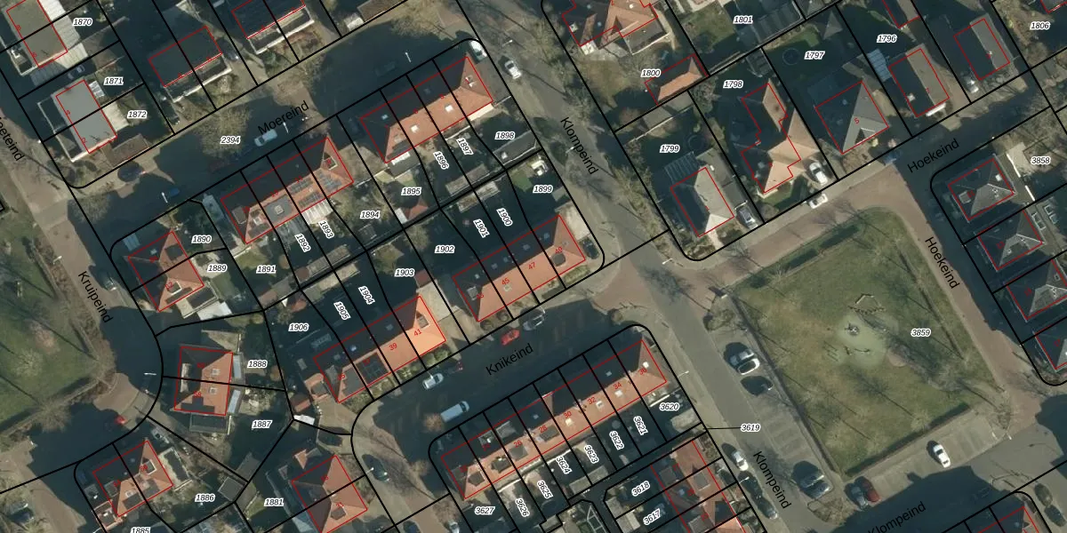 Gebruik de zoekbalk of klik op een perceel voor informatie over de adressen binnen dit perceel.