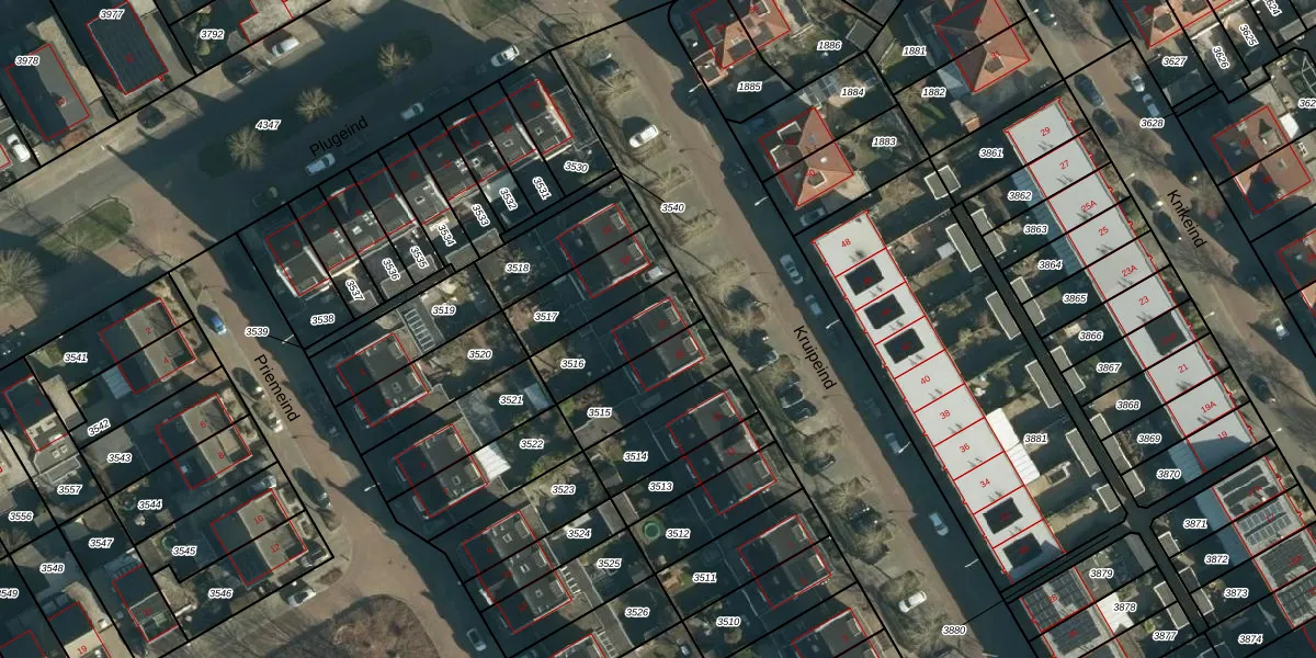 Kruipeind 17 is gelegen op kadastraal perceel BES00K3516. Deze kadastrale aanduiding is uniek en wordt gebruikt door het Kadaster om eigendomsrechten en andere zakelijke rechten vast te leggen. Het perceel maakt onderdeel uit van de kadastrale gemeente Best.