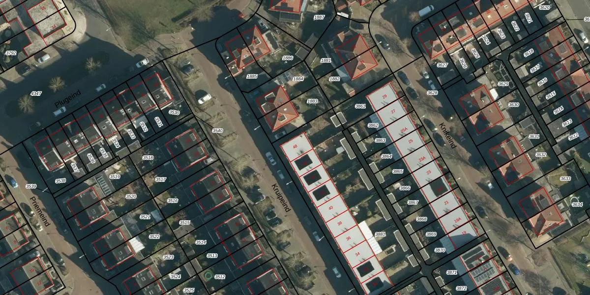 Kruipeind 48 is gelegen op kadastraal perceel BES00K3881. Deze kadastrale aanduiding is uniek en wordt gebruikt door het Kadaster om eigendomsrechten en andere zakelijke rechten vast te leggen. Het perceel maakt onderdeel uit van de kadastrale gemeente Best.