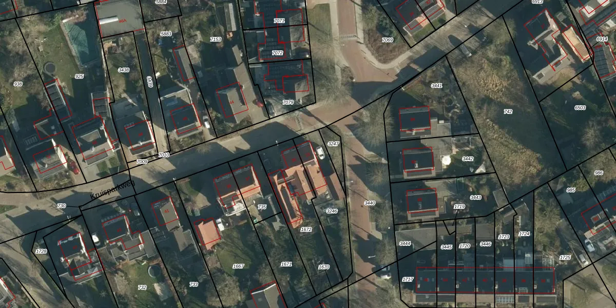 Het perceel waarop Kruisparkweg 33 staat heeft een oppervlakte van 405 m². Dit is een groot perceel. De perceeloppervlakte wordt geregistreerd door het Kadaster. Gedetailleerde informatie over de maten van dit perceel kunt u vinden in het rapport Kadastrale kaart met maatvoering van Kruisparkweg 33.