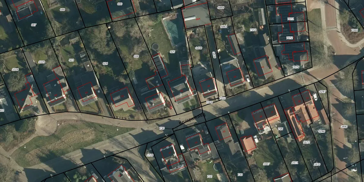 Het perceel waarop Kruisparkweg 50 staat heeft een oppervlakte van 1120 m². Dit is een zeer groot perceel. De perceeloppervlakte wordt geregistreerd door het Kadaster. Gedetailleerde informatie over de maten van dit perceel kunt u vinden in het rapport Kadastrale kaart met maatvoering van Kruisparkweg 50.