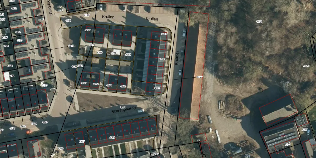 Het perceel waarop Krulmes 3 staat heeft een oppervlakte van 604 m². Dit is een groot perceel. De perceeloppervlakte wordt geregistreerd door het Kadaster. Gedetailleerde informatie over de maten van dit perceel kunt u vinden in het rapport Kadastrale kaart met maatvoering van Krulmes 3.