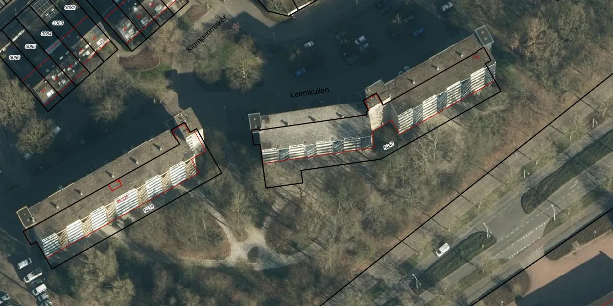 Het perceel waarop Leemkuilen 87 staat heeft een oppervlakte van 1301 m². Dit is een zeer groot perceel. De perceeloppervlakte wordt geregistreerd door het Kadaster. Gedetailleerde informatie over de maten van dit perceel kunt u vinden in het rapport Kadastrale kaart met maatvoering van Leemkuilen 87.