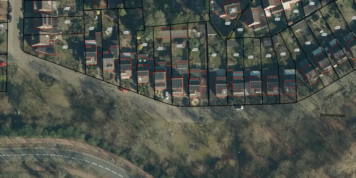 Gebruik de zoekbalk of klik op een perceel voor informatie over de adressen binnen dit perceel.