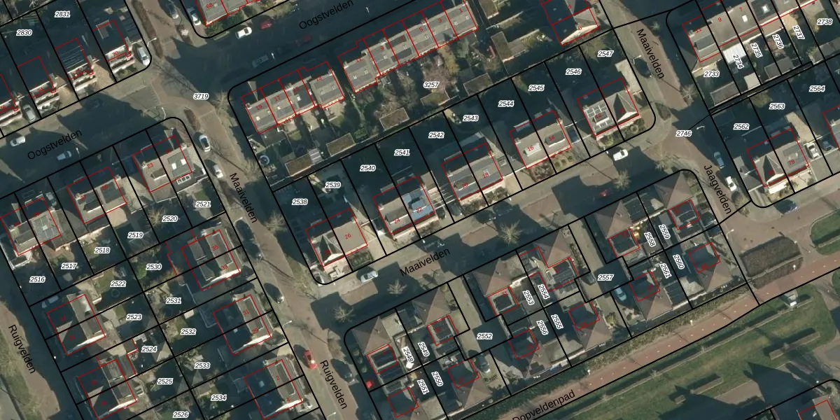 Gebruik de zoekbalk of klik op een perceel voor informatie over de adressen binnen dit perceel.
