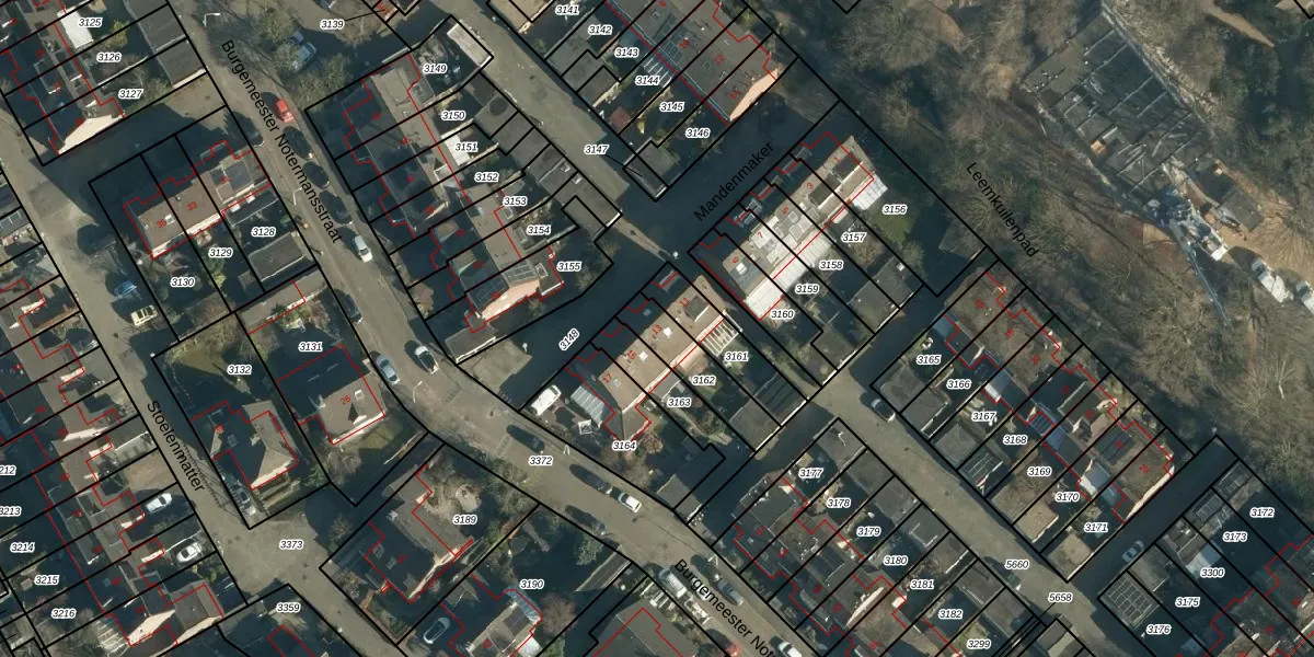Gebruik de zoekbalk of klik op een perceel voor informatie over de adressen binnen dit perceel.