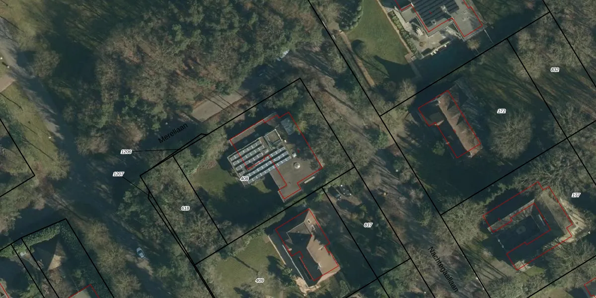 Het perceel waarop Merellaan 2 staat heeft een oppervlakte van 1751 m². Dit is een zeer groot perceel. De perceeloppervlakte wordt geregistreerd door het Kadaster. Gedetailleerde informatie over de maten van dit perceel kunt u vinden in het rapport Kadastrale kaart met maatvoering van Merellaan 2.
