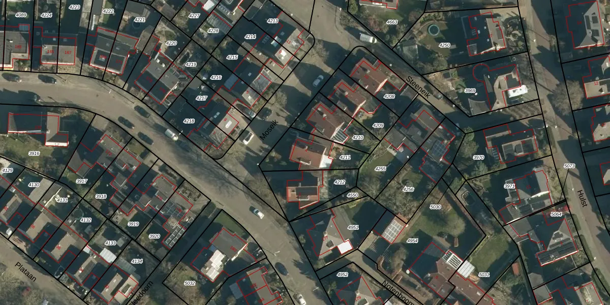 Het perceel waarop Moseik 4 staat heeft een oppervlakte van 324 m². Dit is een groot perceel. De perceeloppervlakte wordt geregistreerd door het Kadaster. Gedetailleerde informatie over de maten van dit perceel kunt u vinden in het rapport Kadastrale kaart met maatvoering van Moseik 4.
