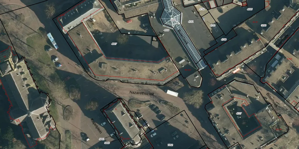 Het perceel waarop Nazarethstraat 103 staat heeft een oppervlakte van 2720 m². Dit is een zeer groot perceel. De perceeloppervlakte wordt geregistreerd door het Kadaster. Gedetailleerde informatie over de maten van dit perceel kunt u vinden in het rapport Kadastrale kaart met maatvoering van Nazarethstraat 103.