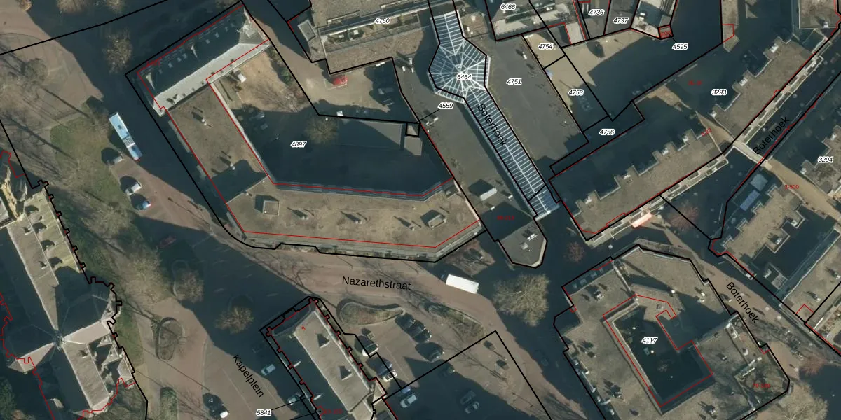 Het perceel waarop Nazarethstraat 111 staat heeft een oppervlakte van 2720 m². Dit is een zeer groot perceel. De perceeloppervlakte wordt geregistreerd door het Kadaster. Gedetailleerde informatie over de maten van dit perceel kunt u vinden in het rapport Kadastrale kaart met maatvoering van Nazarethstraat 111.