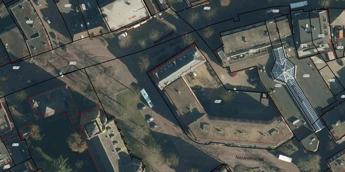 Het perceel waarop Nazarethstraat 21 staat heeft een oppervlakte van 2720 m². Dit is een zeer groot perceel. De perceeloppervlakte wordt geregistreerd door het Kadaster. Gedetailleerde informatie over de maten van dit perceel kunt u vinden in het rapport Kadastrale kaart met maatvoering van Nazarethstraat 21.