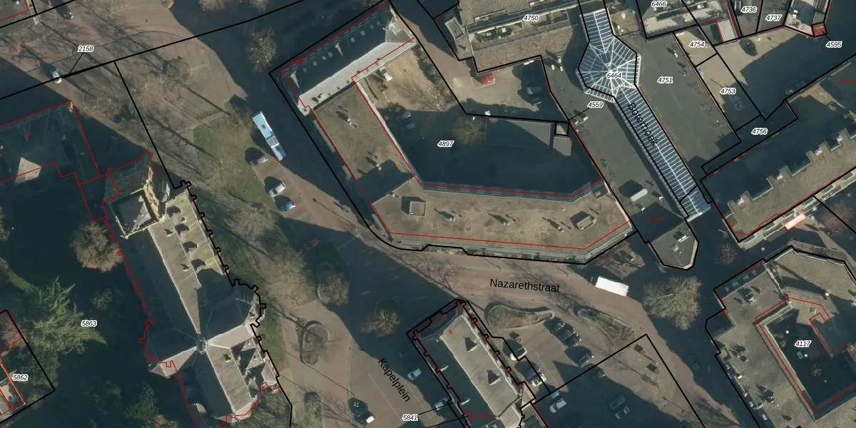 Het perceel waarop Nazarethstraat 63 staat heeft een oppervlakte van 2720 m². Dit is een zeer groot perceel. De perceeloppervlakte wordt geregistreerd door het Kadaster. Gedetailleerde informatie over de maten van dit perceel kunt u vinden in het rapport Kadastrale kaart met maatvoering van Nazarethstraat 63.