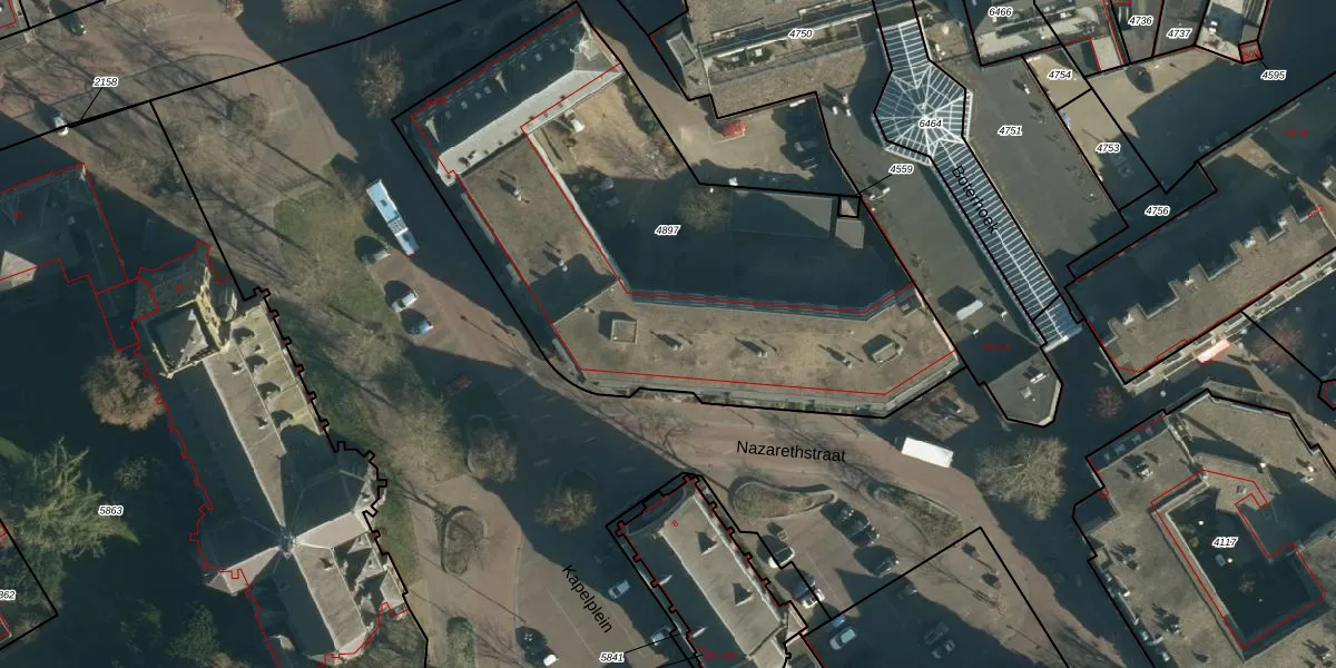 Het perceel waarop Nazarethstraat 69 staat heeft een oppervlakte van 2720 m². Dit is een zeer groot perceel. De perceeloppervlakte wordt geregistreerd door het Kadaster. Gedetailleerde informatie over de maten van dit perceel kunt u vinden in het rapport Kadastrale kaart met maatvoering van Nazarethstraat 69.