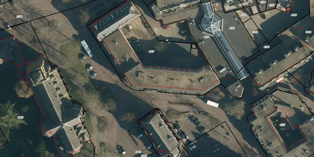 Het perceel waarop Nazarethstraat 75 staat heeft een oppervlakte van 2720 m². Dit is een zeer groot perceel. De perceeloppervlakte wordt geregistreerd door het Kadaster. Gedetailleerde informatie over de maten van dit perceel kunt u vinden in het rapport Kadastrale kaart met maatvoering van Nazarethstraat 75.